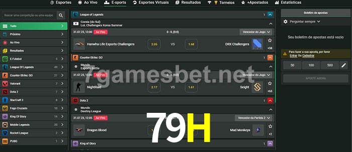 O 79H oferece uma grande seleção de opções de apostas em e-sports com probabilidades competitivas